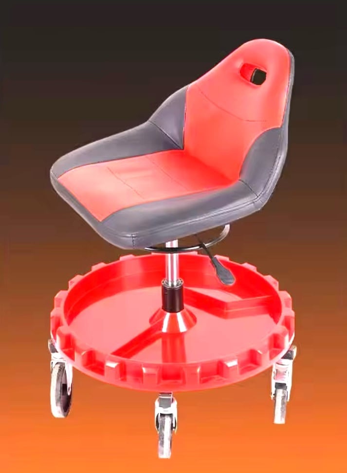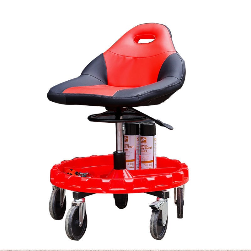 研磨用スツール 高さ調整可 大型キャスター レッドブラック座面